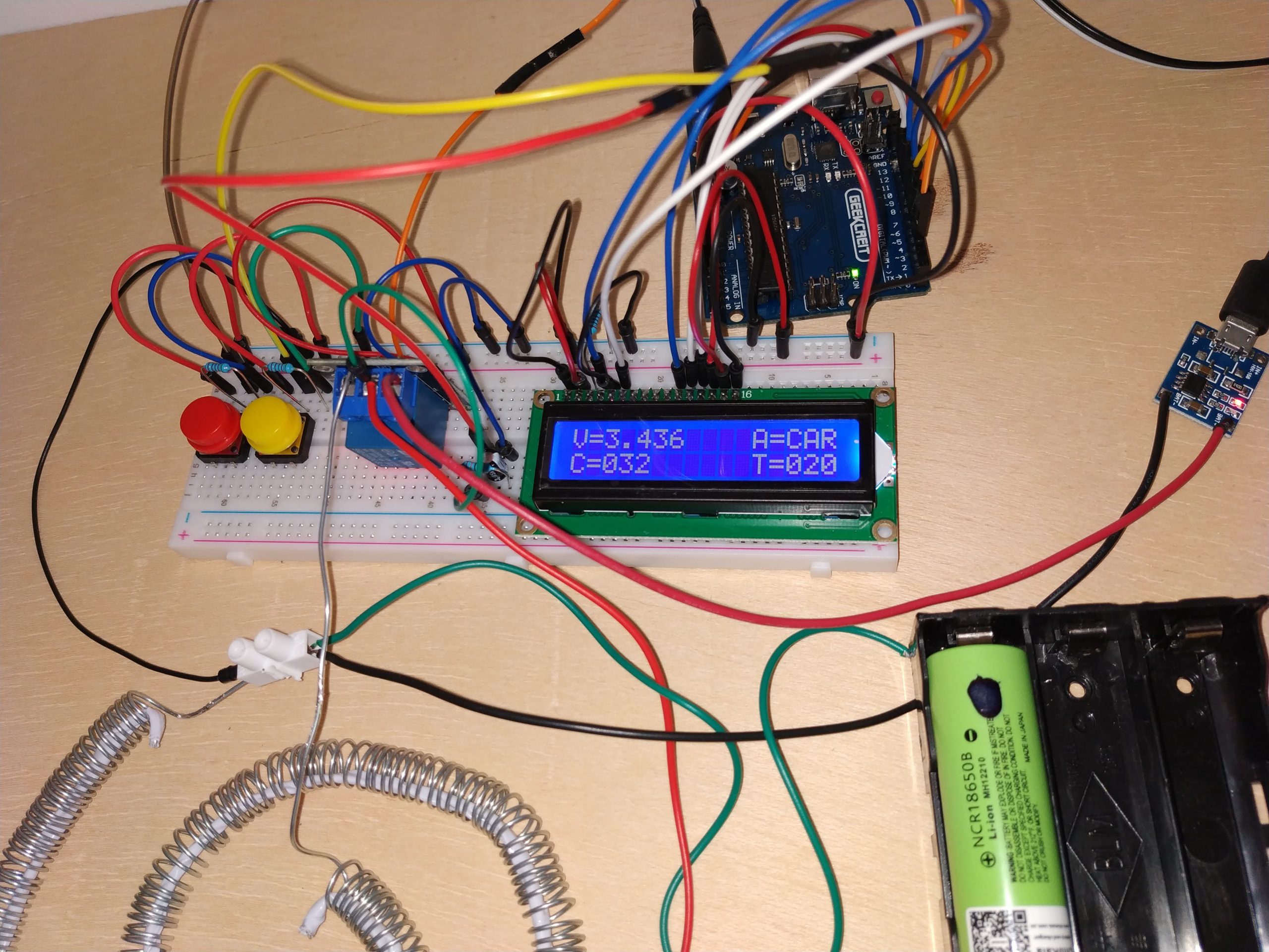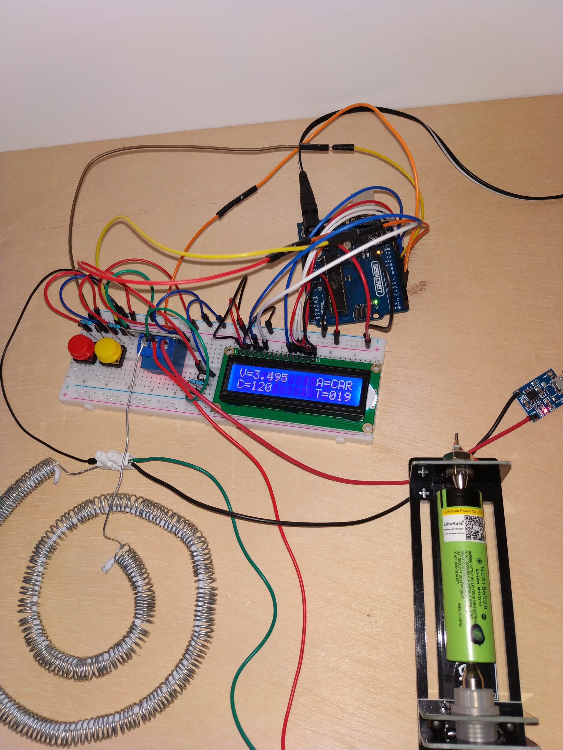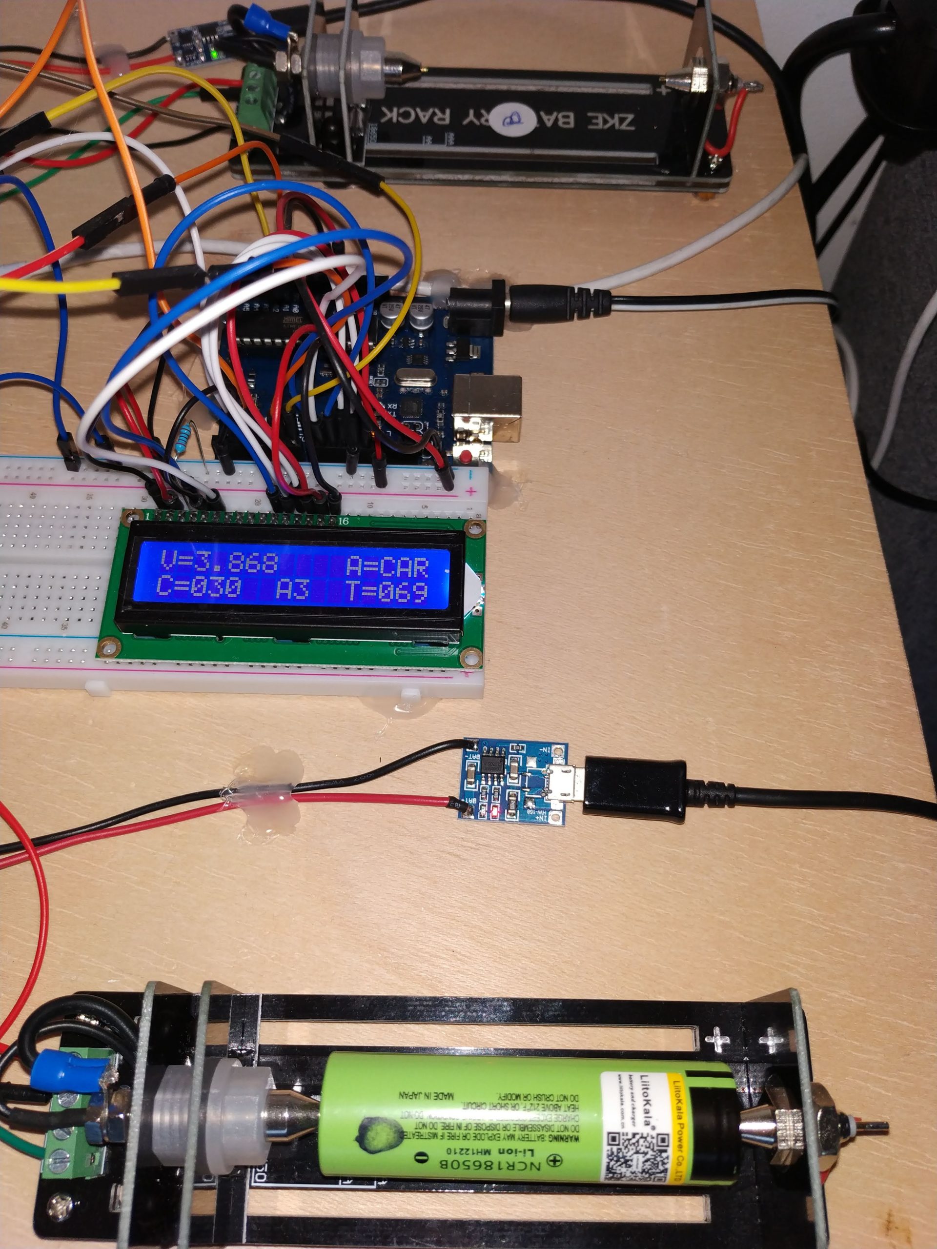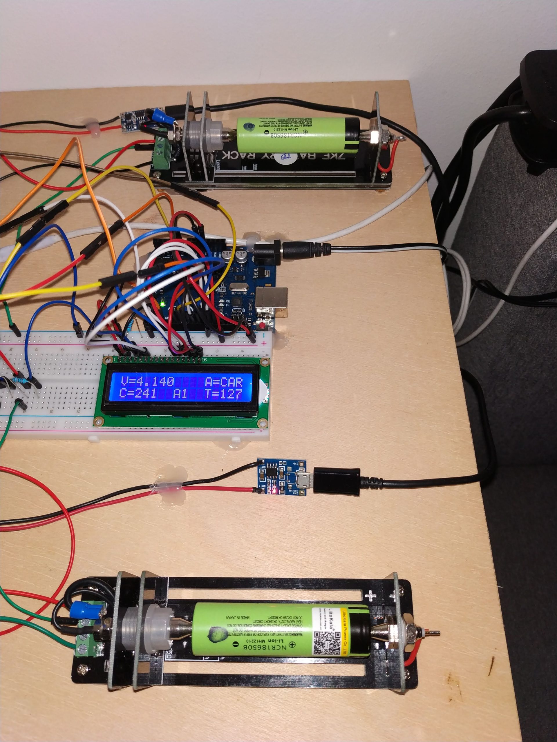 **Actualización 20/03/2020: Como podéis observar en la foto del 20/03/2020 del tester, lo he modificado para poder hacer test en dos celdas de forma simultánea. Las pruebas con la celda de Liitokala continúan con normalidad. Ahora he comenzado a testear las celdas de NCR18650B de Varicore, lo podéis ver en la entrada Degradación NCR18650B de Varicore.